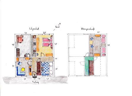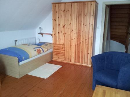 Und oben? Oben ist das zweite Schlafzimmer, vielleicht für die Kinder. Ein drittes ist auch noch geplant aber das dauert noch. Die anderen Räume oben nutzen wir privat, wenn wir selbst auch mal im Frankenwald, in unsrer "alten Heimat" sind. | ![]() |