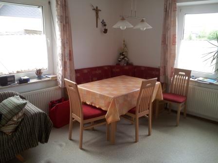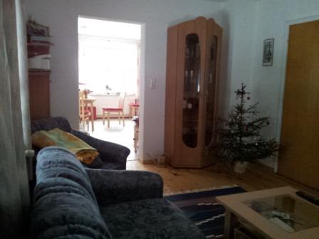 In´s Wohnzimmer zum gemütlichen Sofa und zur Glotze geht's direkt von der Küche oder vom Flur aus. Hier kann man sich reinlümmeln, wenn´s geht sich auch hinlegen. Spiele und Malsachen für Kinder sind im Schrank versteckt. | ![]() |