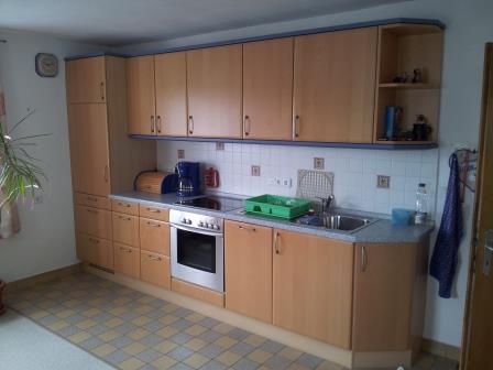 Grad durch den Hausgang geht's gleich in die Küche mit viel Platz zum Essen und Rumsitzen. Hier können sich die Köche austoben und alle anderen sitzen bequem am großen Küchentisch und schauen zu oder helfen einfach mit. Gegessen wird gleich in der Küche, so wie früher, und danach legt man sich auf's Kanapee. Die Küche ist komplett eingerichtet und hat zusätzlich noch einen Holzherd, der zum Kochen und zum Heizen genutzt werden kann. | ![]() |