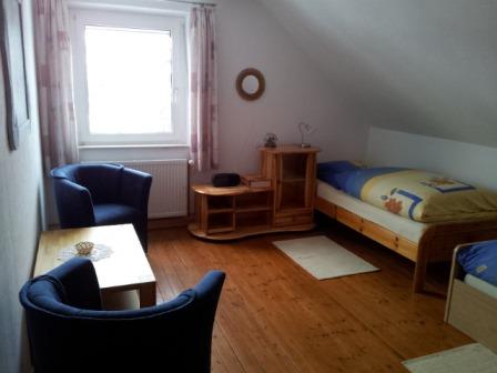 Bild kommt noch | Das Schlafzimmer mit dicken Federbetten so wie früher oder auch mit dünneren war mal ein Kuhstall. Dovon merkt man aber nichts mehr. Hier kann man nach einem anstrengenden Urlaubstag ins Bett fallen und sanft entschlummern. |
